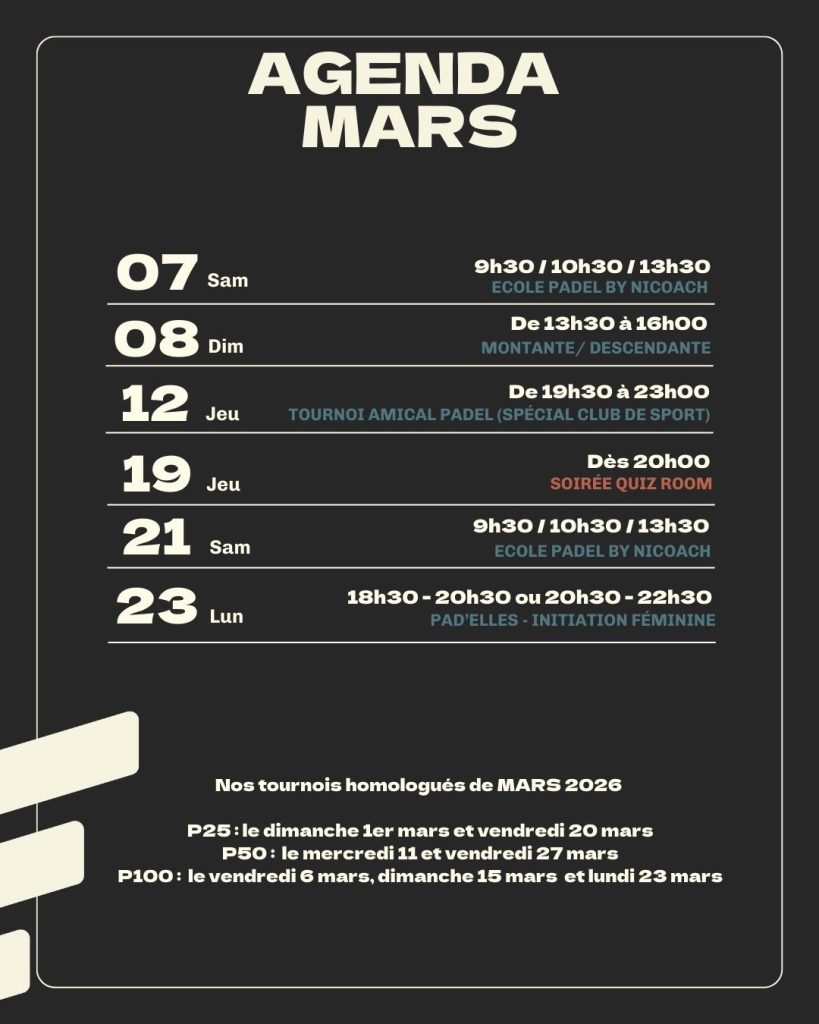 Chaque mois le F organise divers évènements. Qu'il soit sportif ou convivial, nous essayons de répondre aux attentes de tous. Renseignements et inscriptions auprès du personnel du complexe : 02.99.99.64.11. Les inscriptions à nos évènements sportifs se font désormais via l'application du F